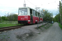 The only tram operating on the Line 3 approaches the formerly busy terminal located near the now-closed coal mine.