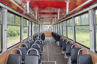A tram operating on the Line 3 completes the AM shift and passes through the Depot while in revenue service, to be relieved by another tram, pulling out for the PM shift. Passengers are asked to transfer between trams.